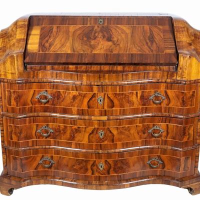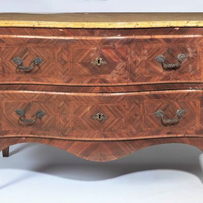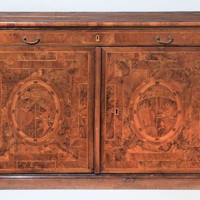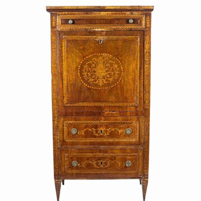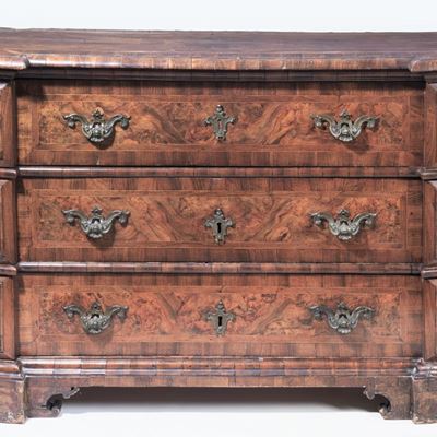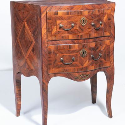 Canterano Emiliano Luigi XIV in Noce e Radica DI Noce, con Filettature Intarsiate, Montanti con F...