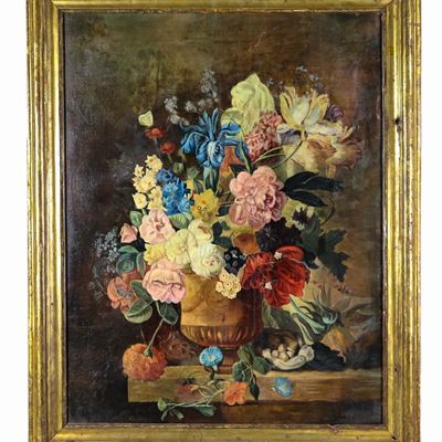 "vaso con Mazzo DI Fiori", Luminoso Dipinto Ad Olio su Tela
