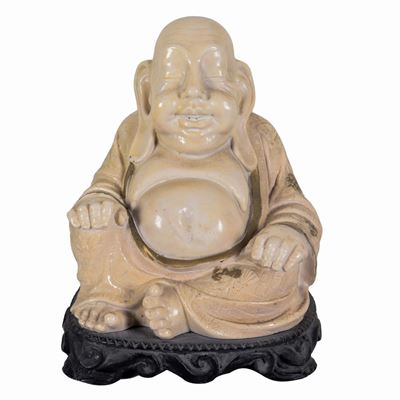 "buddha", Antica Scultura in Pietra Dura Bianca e Oro
