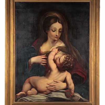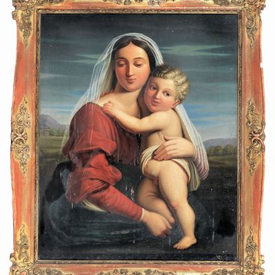 "madonna con Bambino", Dipinto Ad Olio su Tela