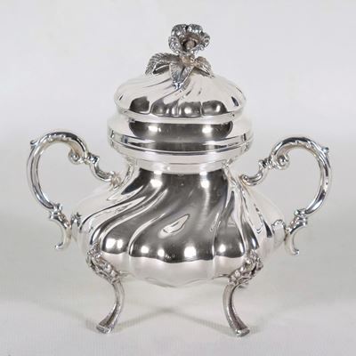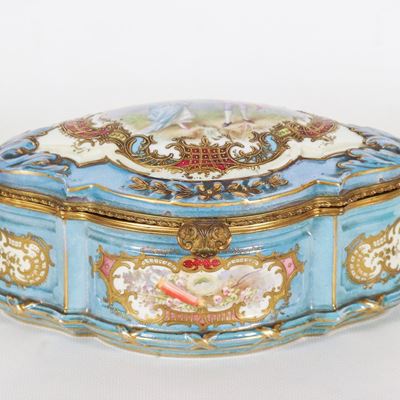 Scatola Ovale in Porcellana Celeste DI Sèvres, con Lumeggiature a Rilievo in Oro Zecchino e Riqua...