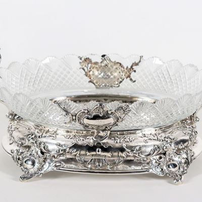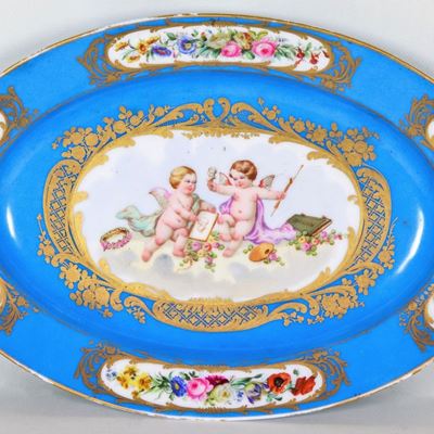 Antico Piatto Ovale da Muro in Porcellana Francese DI Sèvres, Interamente Decorato e Variopinto c...