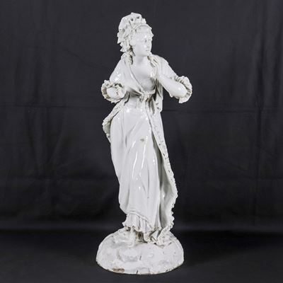 "giovane Dama con Cuffietta", Antica Grande Scultura in Porcellana Bianca Capodimonte. Lievi Dife...