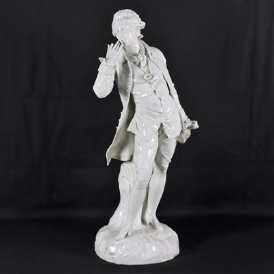 "cavaliere", Antica Grande Scultura in Porcellana Bianca DI Louisbourg. Mancanza DI un Dito alla ...