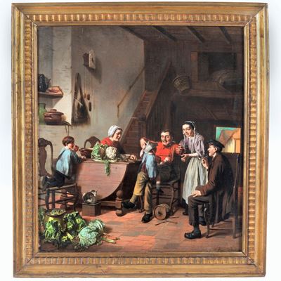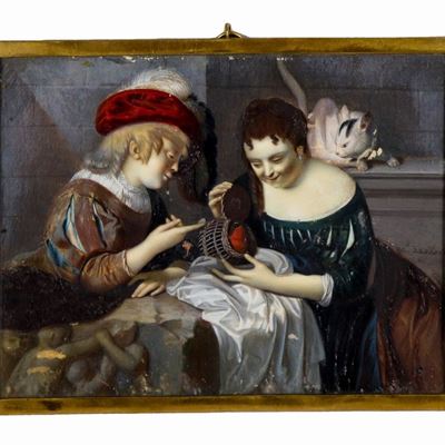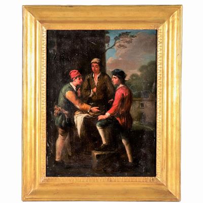 Bottega DI. "I Giocatori DI Morra", Dipinto Ad Olio su Tela