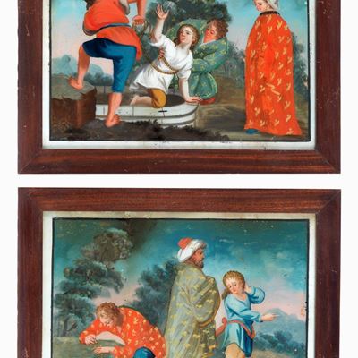 “ragazzo Salvato dal Pozzo” e "ragazzo che Conta I Denari", Coppia DI Luminosi Dipinti Sottovetro