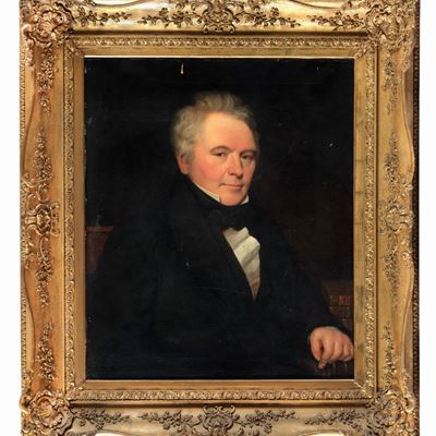 Firmato e Datato 1833 sul Retro della Tela. "ritratto DI Gentiluomo", Dipinto Ad Olio su Tela