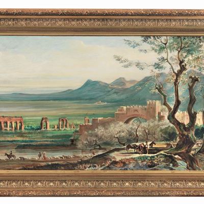 Firmato in Basso a Destra e Datato 1897 sul Retro della Tela. "veduta della Campagna Romana con P...