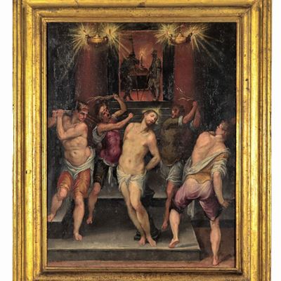 "la Flagellazione DI Cristo" Dipinto Ad Olio su Tela DI Ottima Esecuzione Pittorica