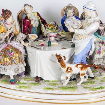 "il Pranzo dei Nobili", Antico Grande Gruppo in Porcellana Capodimonte