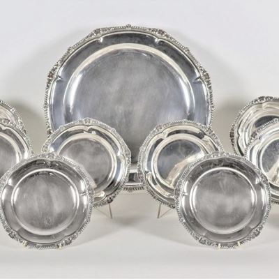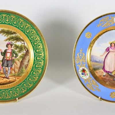 Lotto DI Due Piatti in Porcellana Francese a Varie Policromie, con Medaglioni Dipinti e Lumeggiat...