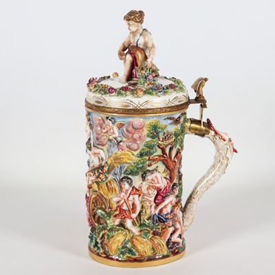 Grande Boccale in Porcellana Istoriata Capodimonte, Interamente Decorato a Policromie con Scene M...