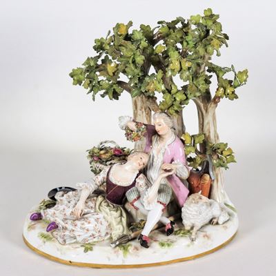 "scena Pastorale", Gruppo in Porcellana Policroma DI Meissen