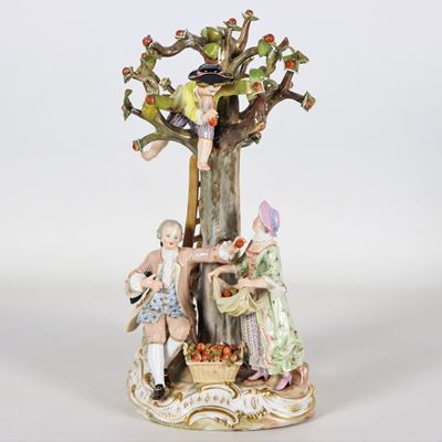"la Raccolta delle Mele", Gruppo in Porcellana Policroma DI Meissen