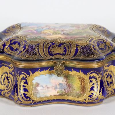 Grande Scatola in Porcellana Blu Cobalto DI Sèvres, con Lumeggiature a Rilievo in Oro Zecchino e ...