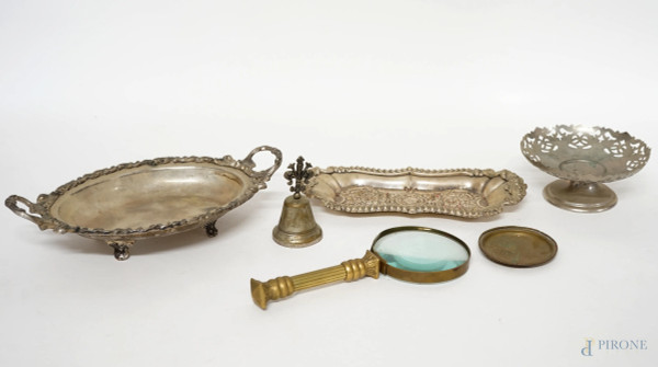 Lotto DI Sei Oggetti In Metallo Argentato E Dorato, Misura Max CM 30.5 X 17.5