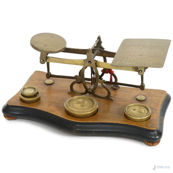 Bilancia Per Lettere In Legno E Ottone, Inghilterra, Inizio XX Secolo, CM 11,5 X 25 X 12
