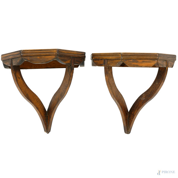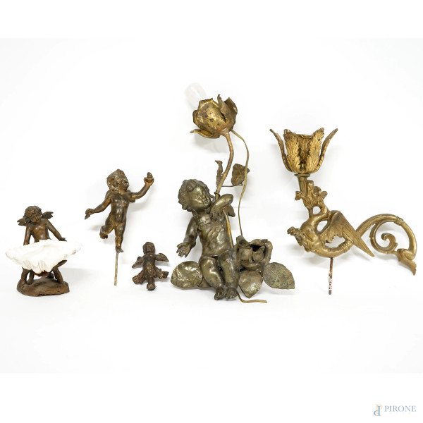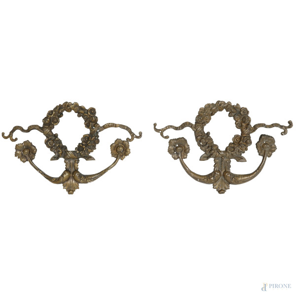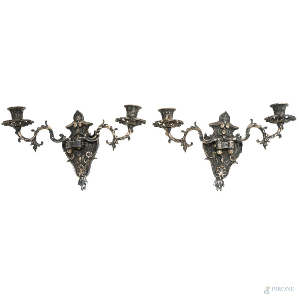Coppia DI Applique In Metallo Brunito A Due Fuochi, XX Secolo, CM 18,5