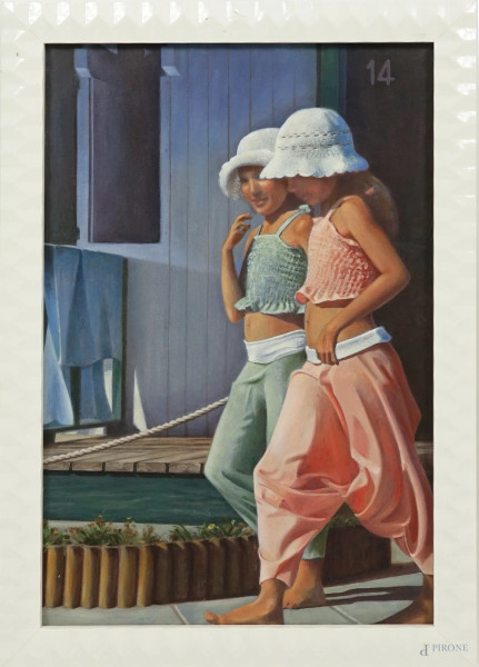 La Sfilata Dei Bambini 2004, Olio Su Cartone Telato, Firmato A Tergo Paola De Luigi, CM 60 X 40, ...