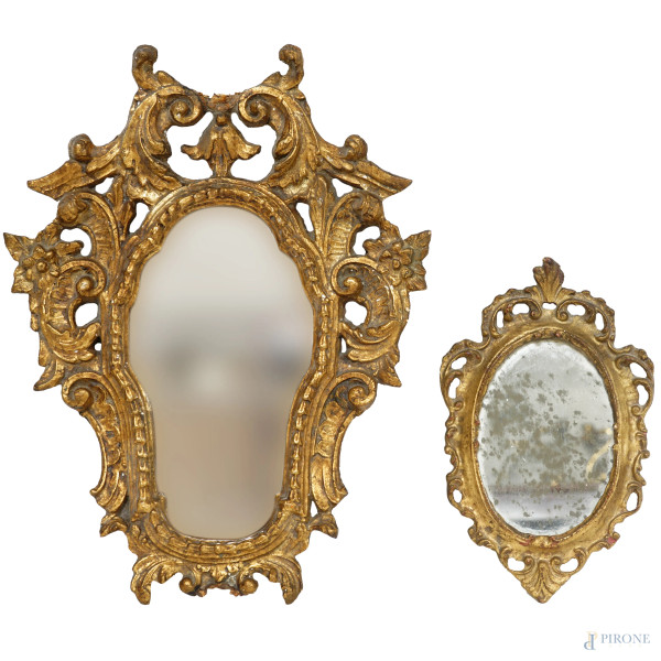 Lotto Composto Da Due Specchierine In Legno Intagliato E Dorato, XX Secolo, Misura Max CM 50 X 38...