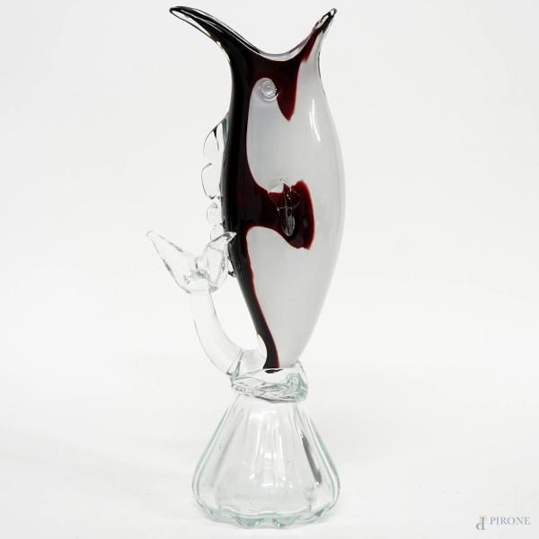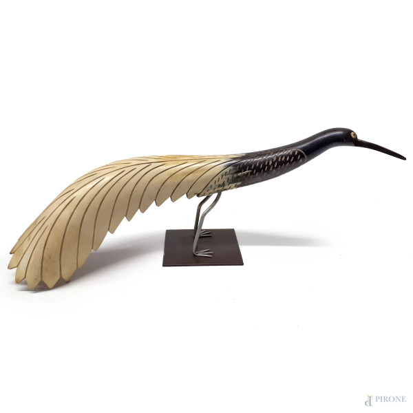 Scultura Vintage In Corno Raffigurante Pavone, CM 17 X 47