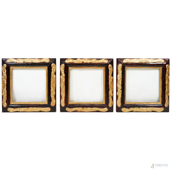 Lotto DI Tre Cornici In Cartapesta Dorata Dipinta A Finto Legno, XX Secolo, Ingombro CM 60,8 X 61...