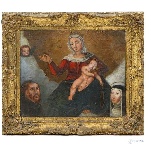 Madonna Del Carmelo, Oleografia, CM 26,5 X 19, Entro Cornice (Difetti)