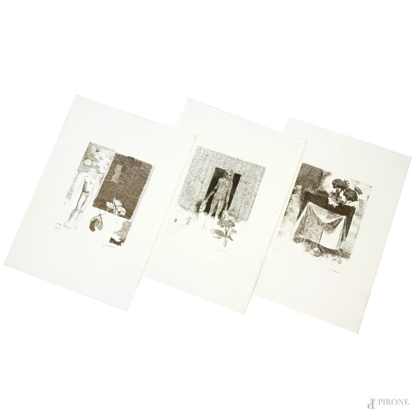 Lotto DI Tre Multipli Su Carta, Firmati E Numerati, Es. 32/90, CM 50 X 35, (Macchie)