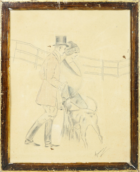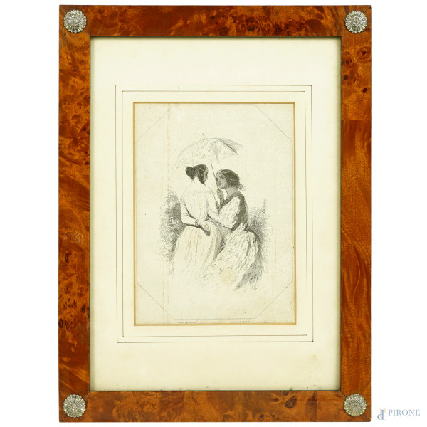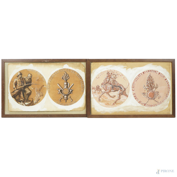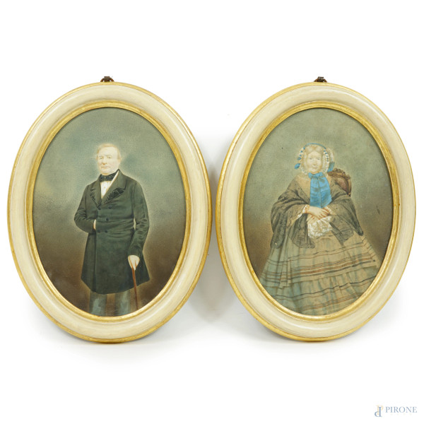Coppia DI Ritratti In Ovale, Tecnica Mista Su Carta, CM 24 X 18, Entro Cornice