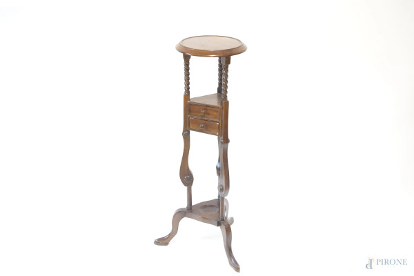Trespolo In Noce, Piano Circolare Poggiante Su Tre Montanti Scolpiti A Tortiglione Inframezzati D...