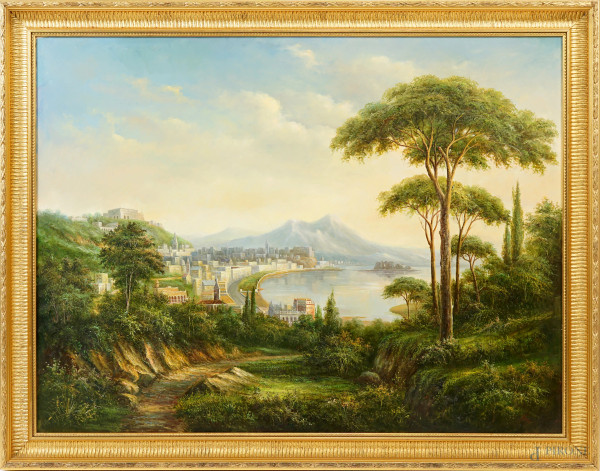 Veduta Del Golfo DI Napoli, Olio Su Tela, XX Secolo, CM 78 X 103, Entro Cornice
