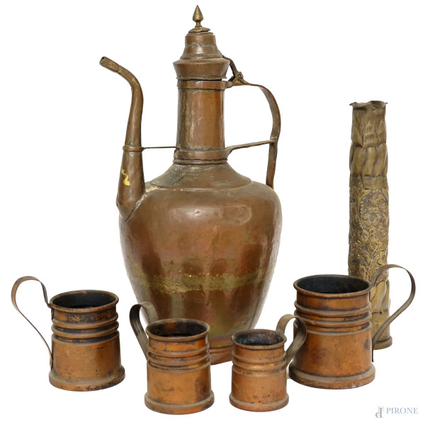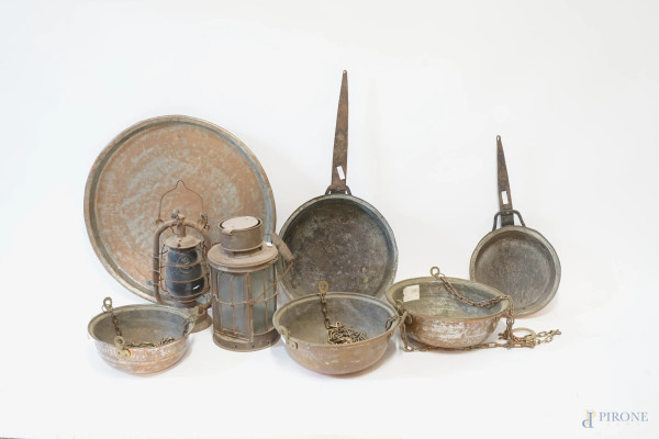 Lotto Composto Da Due Lanterne E Cinque Stoviglie In Rame, Misura Max Diametro CM 53.5
