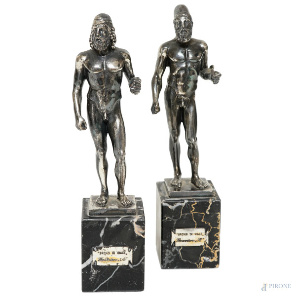 Sculture In Argento Rappresentanti I Bronzi DI Riace, XX Secolo, Piedistalli In Marmo, Altezza Ma...