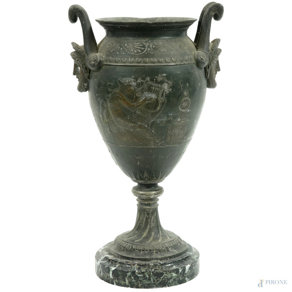 Vaso In Antimonio In Stile Archeologico, Base Circolare In Marmo, Fabrication FrançAise, XIX-XX S...