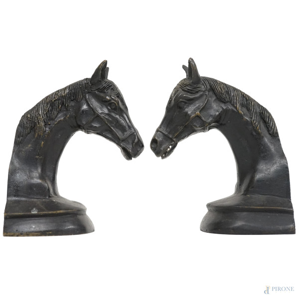 Coppia DI Fermalibri In Resina A Foggia DI Teste DI Cavallo, XX Secolo, CM 15,5 X 8,5 X 7,5