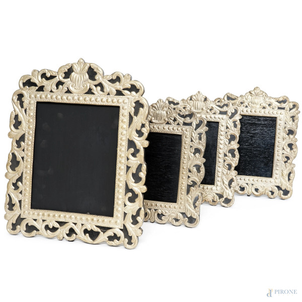 Lotto DI Quattro Cornici In Legno E Metallo Argentato E Sbalzato, Decori A Motivi Vegetali, XX Se...