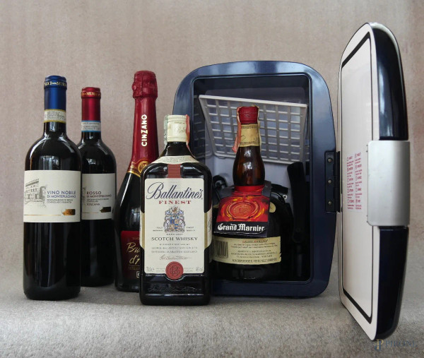 Lotto Composto Da 5 Bottiglie DI Vino E Liquori Vari; Ed Un DI Mini Frigo Bar Portatile (Anche Pe...