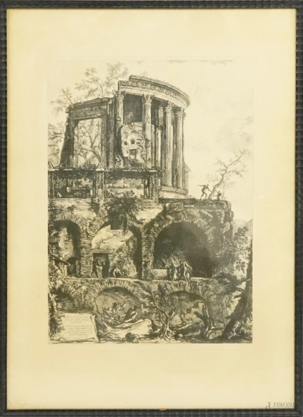 ALTRA VEDUTA DEL TEMPIO DELLA SIBILLA IN TIVOLI, MULTIPLO SU CARTA, CM 70,5 X 49,5, RIPRODUZIONE ...