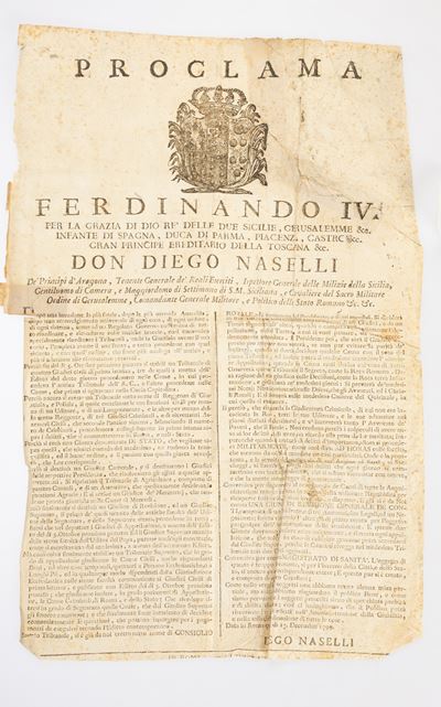 Ferdinando IV° di Borbone - Proclama sul riordinamento dei tribunali del Regno di Napoli.