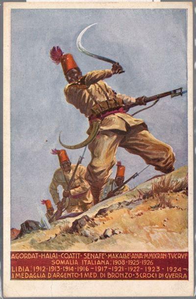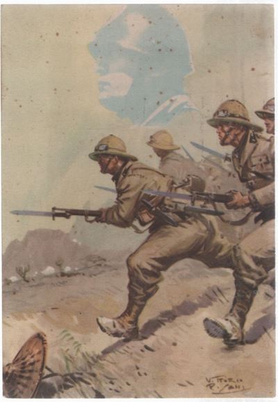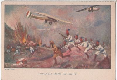 Rara Cartolina Coloniale Orginale I Fedelissimi Ascari All'Assalto