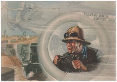 Cartolina Coloniale Originale Il Gruppo Autotrainato Indigeni"Sempre Avanti Dovunque"