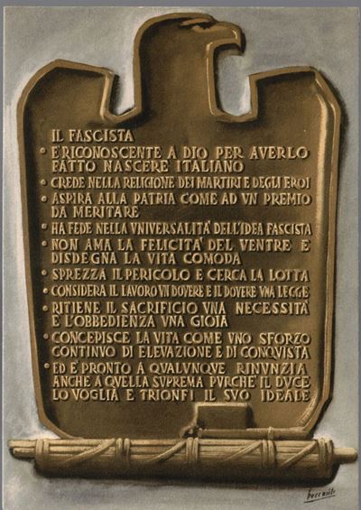 Cartolina Originale Propaganda Fascista Con Il Decalogo Del Fascista P.N.F.