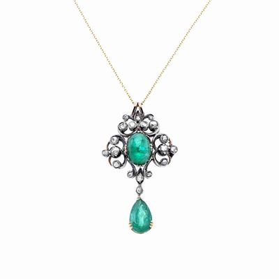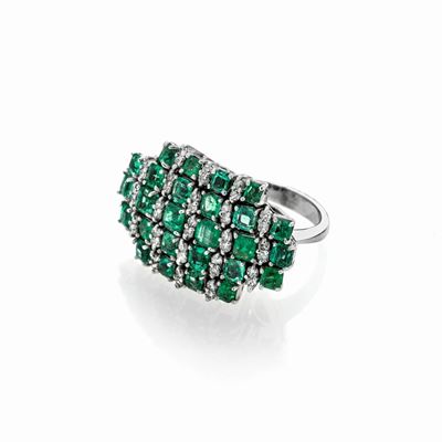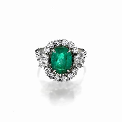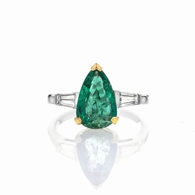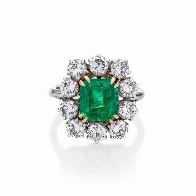 Anello in Platino, Oro Giallo, Diamanti e Smeraldo