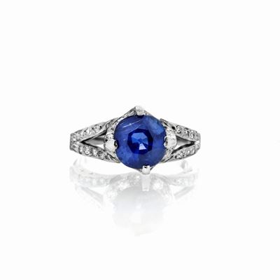 Anello in Oro Bianco 18k, Diamanti e Zaffiro Burma