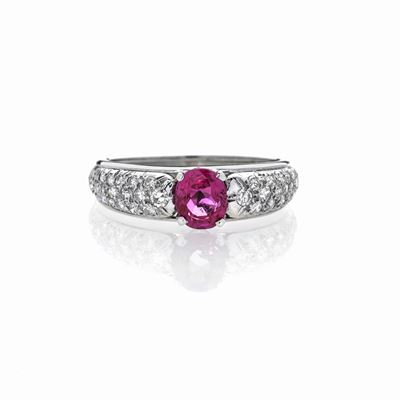 Anello a Fascia in Platino, Diamanti e Rubino Burma