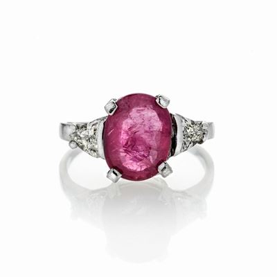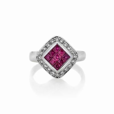Anello in Oro Bianco 18k, Diamanti e Rubini