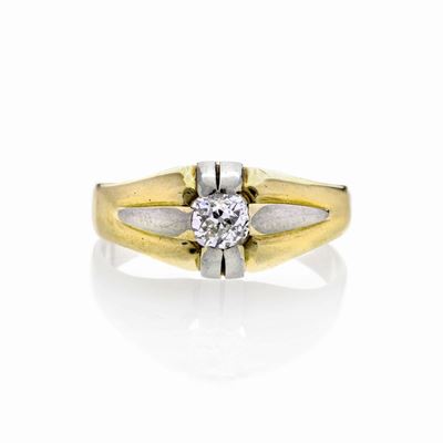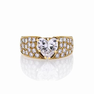 Anello a Fascia in Oro Giallo, Diamanti e Diamante Taglio a Cuore