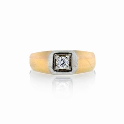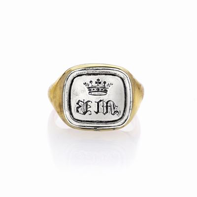 Anello Chevalier in Oro Giallo 18kt e Metallo Inciso
