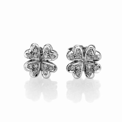 Paio DI Orecchini a Quadrifoglio in Oro Bianco 18k e Diamanti