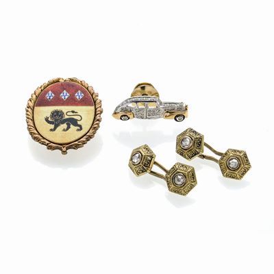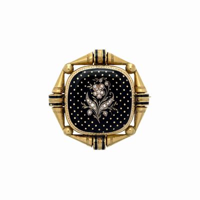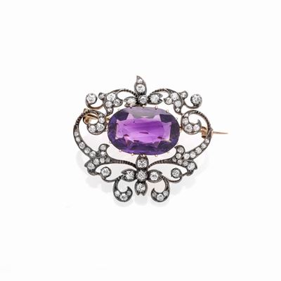 Grande Spilla in Oro 12k, Argento e Diamanti
